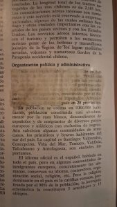 Por supuesto que el tomo III de la Geografía universal ilustrada de Sopena, editada en España en 1975, contiene enmiendas a límites, nomenclaturas y territorios. En la página 268 comienza la sección acerca de la organización política y administrativa de Chile. Ahí hay siete líneas y media de texto borrado, de seguro con aquel corrector espeso. En mi ejemplar, una mano posterior, quizá la de los dueños originales del volumen, quiso lavar la tachadura para poder leer el texto subyacente. Ese pobre intento de esquivar la censura arruinó el material de la página, que hasta hoy tiene el aspecto de un pañal sucio, pero que, con todo, revela parcialmente las palabras que la censura quiso omitir. Ahí se detalla que el ordenamiento político chileno estaba liderado por un presidente electo democráticamente cada cuatro años, en votaciones cuyos resultados debían ser ratificados por un congreso bicameral que agrupaba a representantes de todas las provincias. Claramente los escolares no podían leer eso.